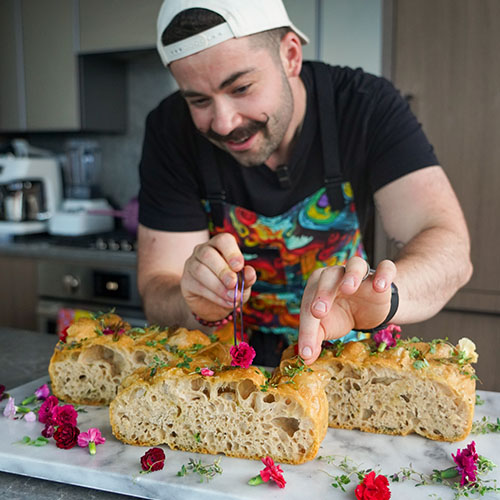 Chef Joe Sasto takes that tradition and brings it into a new era of creativity. His rosemary focaccia marries rustic technique with modern artistry, weaving in Red Fife whole wheat for depth, extra-virgin olive oil for richness, and Fresh Origins® Micro Thyme, Micro Oregano, Rosemary Tops, and Edible Flowers Carnation for a burst of color and fragrance. The result is a loaf that feels both familiar and unexpected, comfort elevated through thoughtful ingredients and chef-driven imagination.